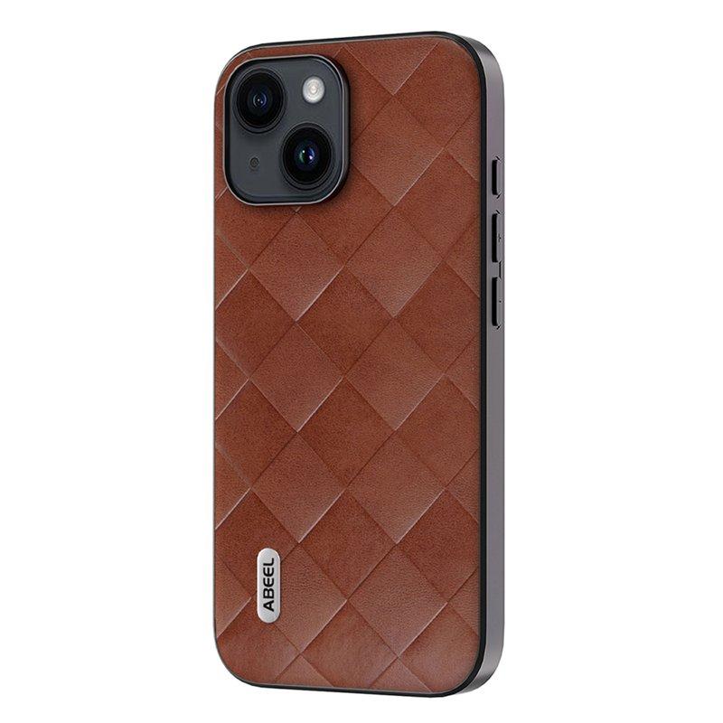 ABEEL Mobilskal till iPhone 15 Plus PU Läder PC+TPU Skydd Brun