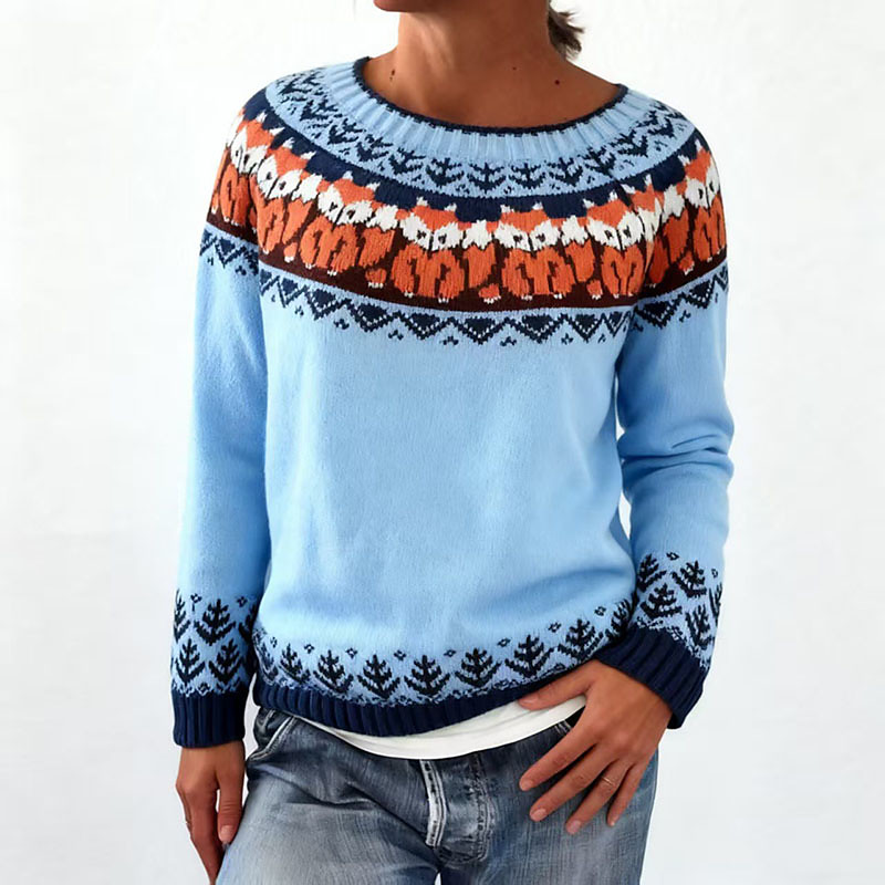 Women's Christmas Sweater Fair Isle Sweater Sweater Pullover Streetwear Casual Animal Geometric Crew Neck Knitted Print Long Sleeve Regular Tops Knit Daily Holiday Going out Army Green Blue Fall