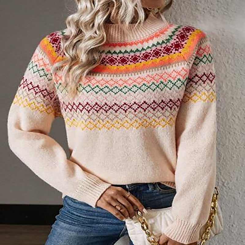 Women's Christmas Sweater Fair Isle Sweater Sweater Pullover Fashion Streetwear Casual Floral Geometric Crew Neck Knitted Print Long Sleeve Regular Tops Knit Daily Holiday Going out White Pink Fall