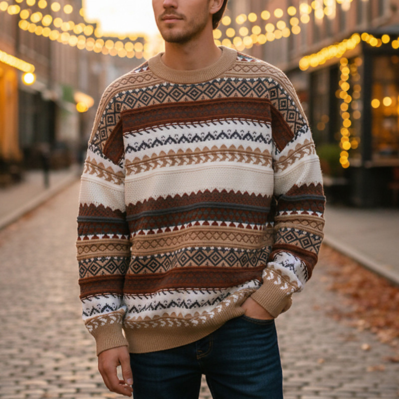 Herren Pullover Fair Isle Sweater Strickpullover Gerippt Stricken Normale Oberteile Gestrickt Geometrisch Rundhalsausschnitt Vintage Mode Lässig Alltagskleidung Bekleidung Herbst Winter Kamel Rote S