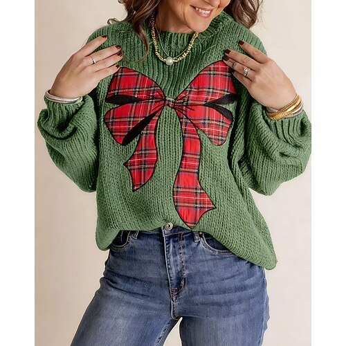 Damen Weihnachtspullover Fair Isle Pullover Pullover Elegant Mode Streetwear Einfarbig Grafik Weihnachtsbaum Rundhalsausschnitt Patchwork Gestrickt Druck Langarm Normale Oberteile Stricken