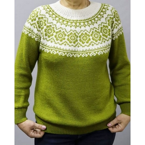 Per donna Maglione natalizio Fair Isle Felpa Maglione Fair Isle Streetwear Casual Floreale Girocollo Lavorato a maglia Stampato Manica Lunga Top Regolari Maglia Quotidiano Ferie Uscire Verde chiaro