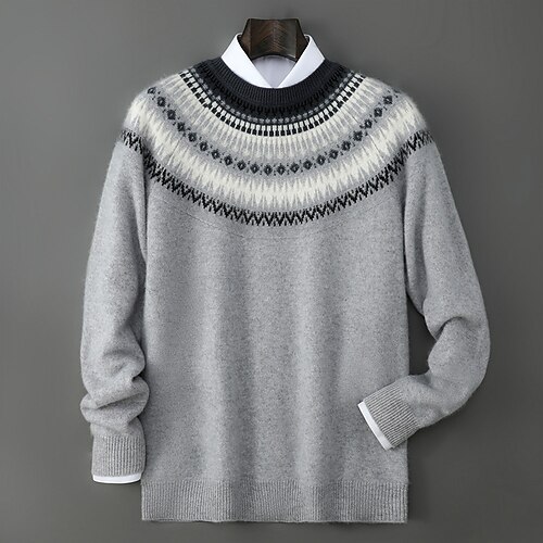 Herren Weihnachtspullover Pullover Fair Isle Sweater Strickpullover Gerippt Stricken Normale Oberteile Gestrickt Linien / Wellen Rundhalsausschnitt Vintage Mode Weihnachten Urlaub Bekleidung Herbst