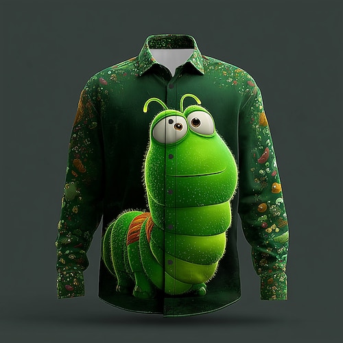 Herren Tiermotiv Insekten Raupe Hemd Knopfhemd Langarm Lustig Outdoor Ferien Frühling Herbst Umlegekragen 3D-Druck Hemden mit Kragen Grün 1# Grün 2# Grün 3# Dunkelgrün Grün