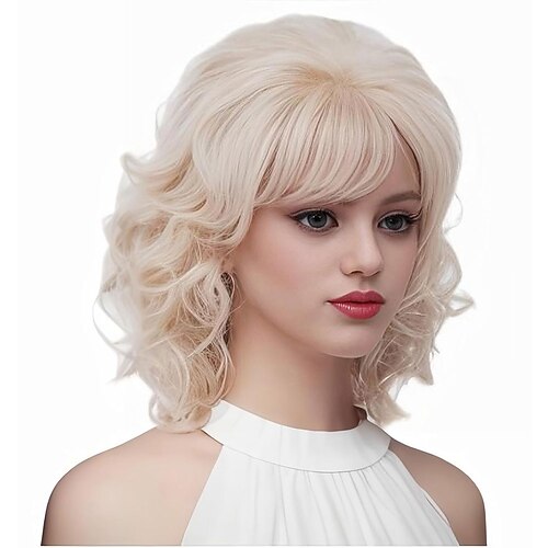 Vintage-Perücken für Damen, blonde Kurzhaarperücke im Stil der 70er und 80er Jahre mit Pony, schulterlange Kunsthaarperücke für Cosplay