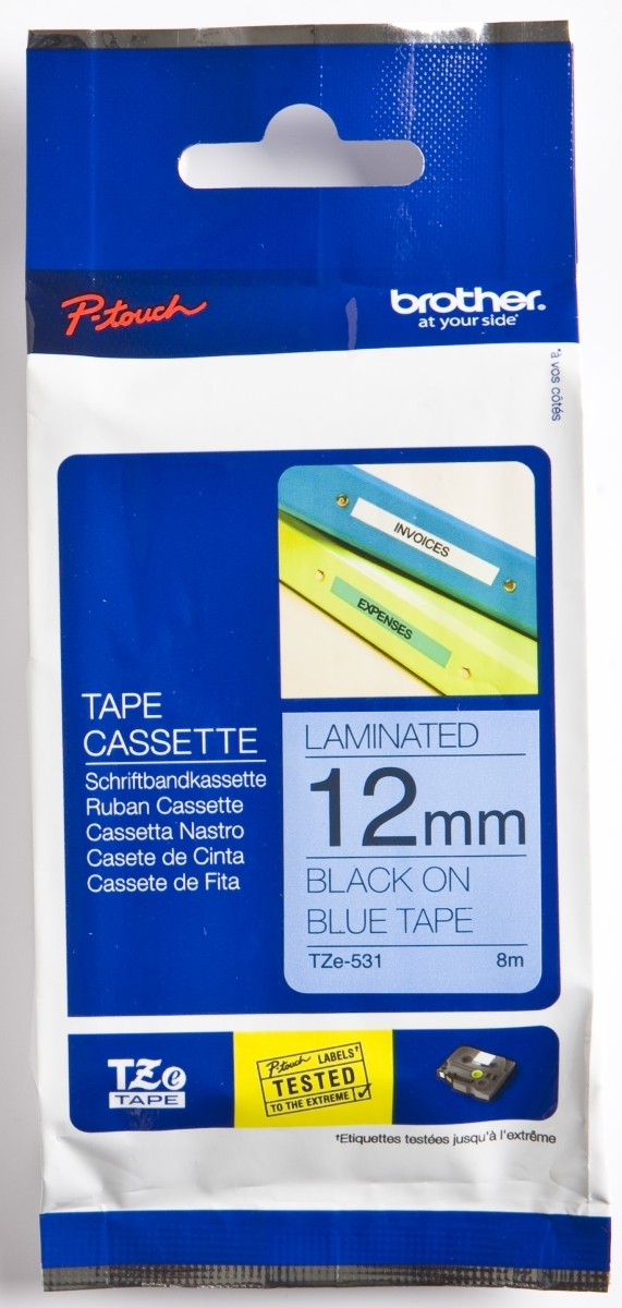 Brother Schriftband TZE531 12mm schwarz/blau Packung mit 25 Stück