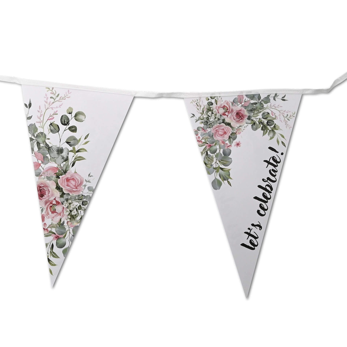 ECOFIESTA 1 Stück Girlande 5m Rosen & Eukalyptus wiederverwendbar kürzbar - Papierkette Geburtstag - Wimpelkette nachhaltige Produktion