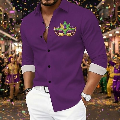 Herrenhemd mit Mardi-Gras-Motiv – klassisches Karnevalshemd mit Knopfleiste