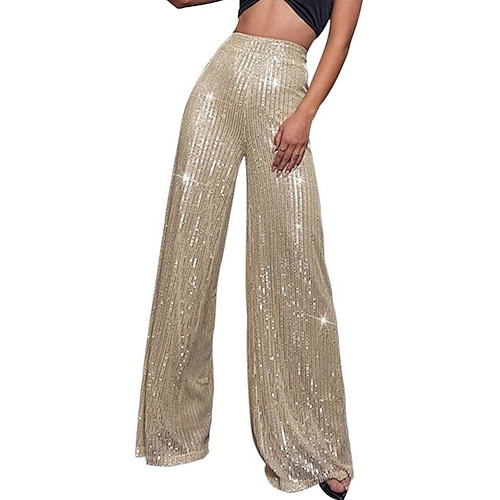 Damen Breites Bein Hosen Hose Glitzernde Hosen Elegant Modisch Glanz In voller Länge Hoher Taillenbund Glatt Pailletten Bequem Mikro-elastisch Party Strasse Party Abend Weinrot M beige Rosagold