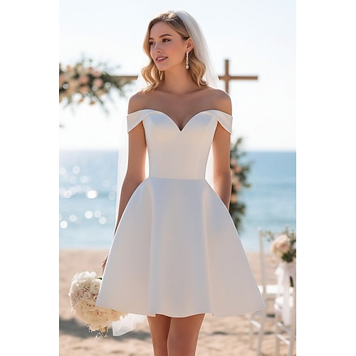 Linea ad A Sirena Tromba Corto Mini Abito in Raso Abito da ritorno a casa Abiti da sposa Abito da sposa Piccoli Abiti Bianchi Senza Maniche Scollo a Cuore Matrimonio Laurea Raso con Pieghe