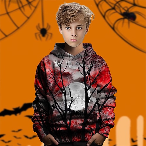 Halloween Jungen 3D Baum Kapuzensweatshirt Langarm Frühling Herbst Mode Streetwear Kinder 4-12 Jahre Mit Kapuze Outdoor Lässig Täglich Normale Passform