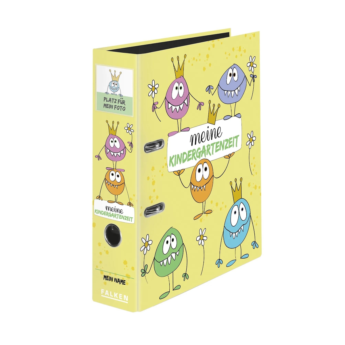 Falken 22001176 Kindergarten-Motivordner Monster DIN A4, Rückenbreite 8cm, schwarzer Innenspiegel, Griffloch - Motiv