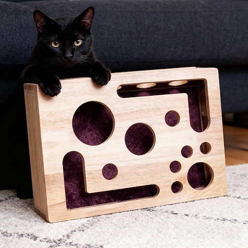 Kratzspielzeug-Spielbox mit integrierter Krallenfeile. Die Feile ist druckfrei und für Nagelknipser und -anspitzer geeignet. Das innenliegende Schleifpapier eignet sich für die Kratzbäume von