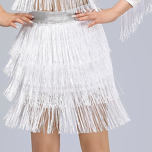 roter asymmetrischer Fransenrock für lateinamerikanische Tänze, Damen