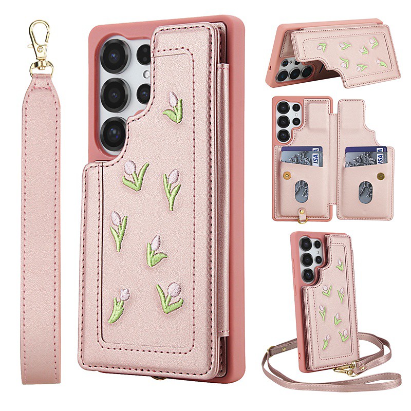 Phone Case For Samsung Galaxy S25 S24 S23 S22 S21 FE S21 Ultra Plus A14 A34 A54 A53 Back Cover Fashion with Wrist Strap Kickstand Flower TPU