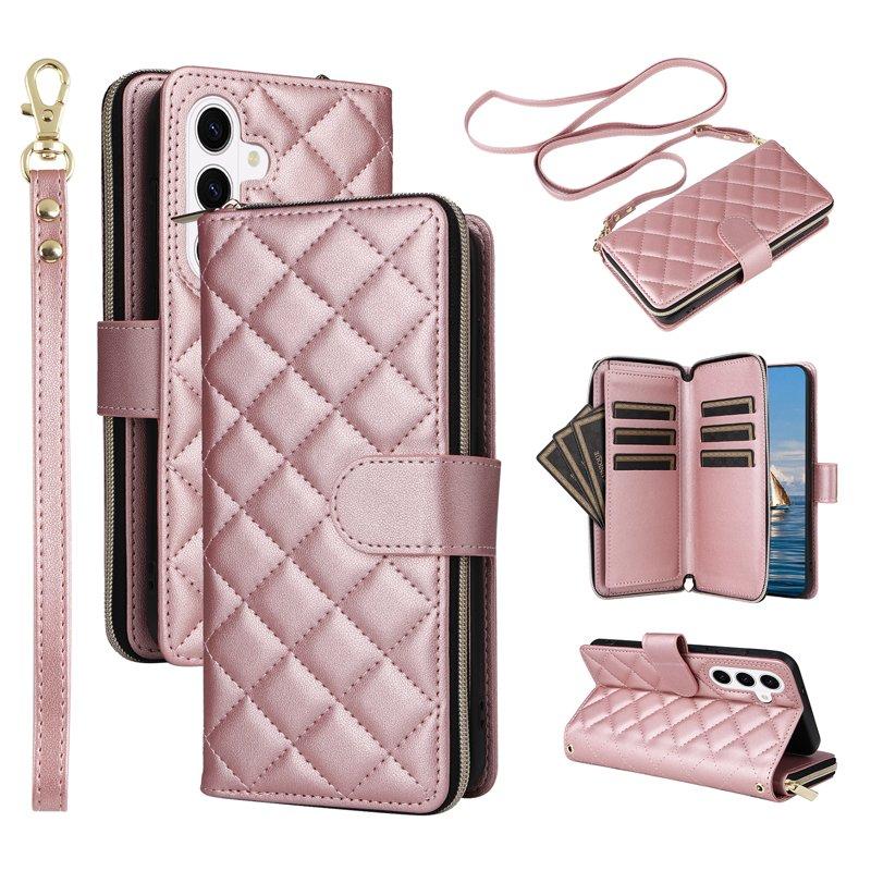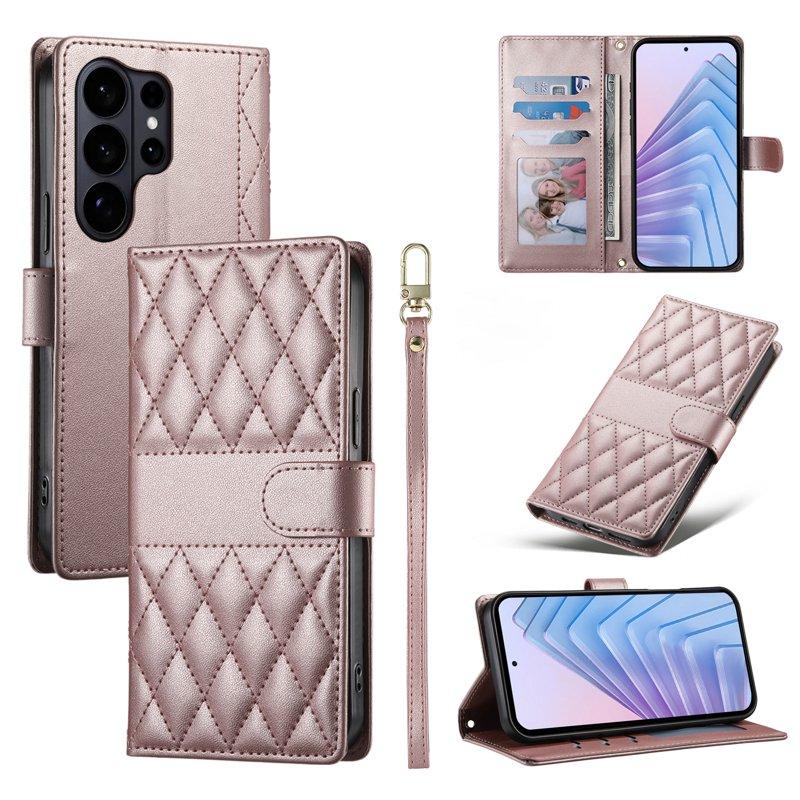 Samsung Galaxy S26 Ultra Plånboksfodral Konstläder Rhombus - Roséguld