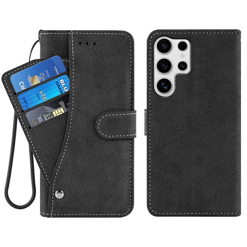 Samsung Galaxy S26 Ultra Plånboksfodral Retro Konstläder - Svart