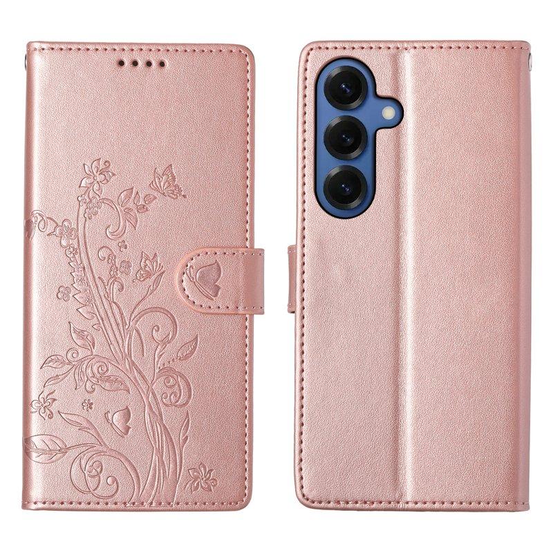 Samsung Galaxy S26 Plånboksfodral Konstläder Blomtryck - Roséguld
