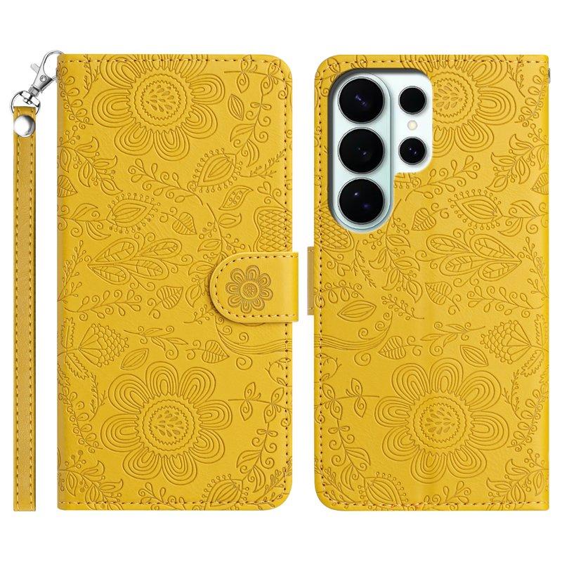 Samsung Galaxy S26 Ultra Plånboksfodral Blommönster Konstläder Flip - Gul