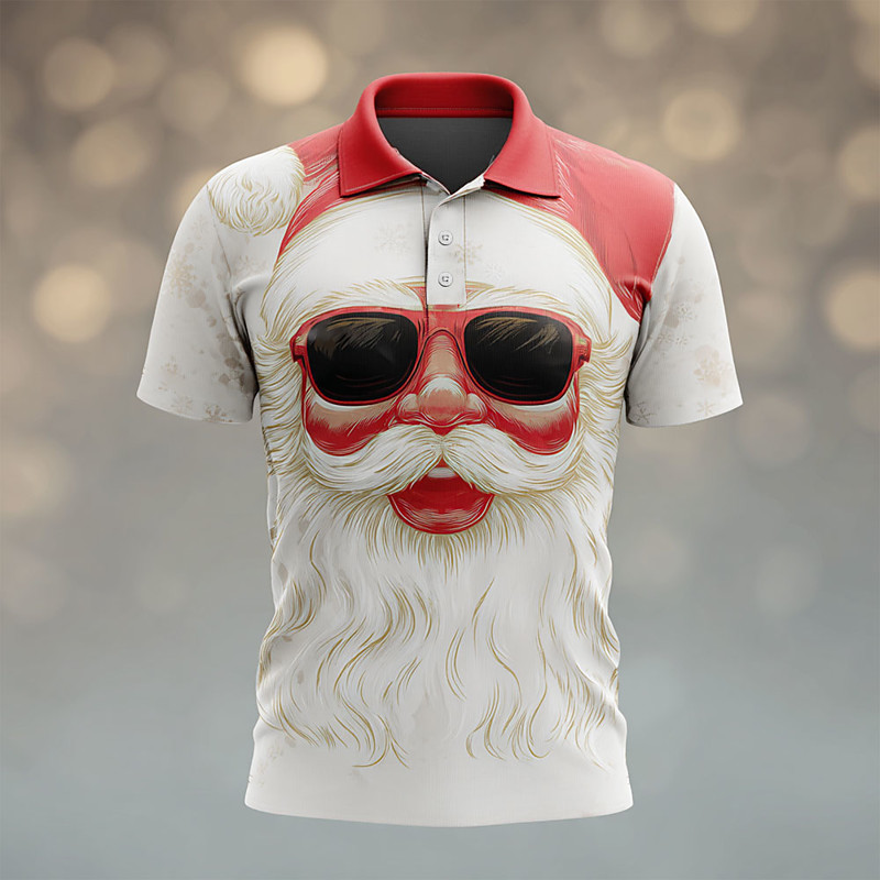 Christmas Men's Santa Claus Polo Short Sleeve Polo Shirts Lapel Casual Holiday Festival Outfit 3D Print Buttons Summer Red 1 Red 3 Red 2