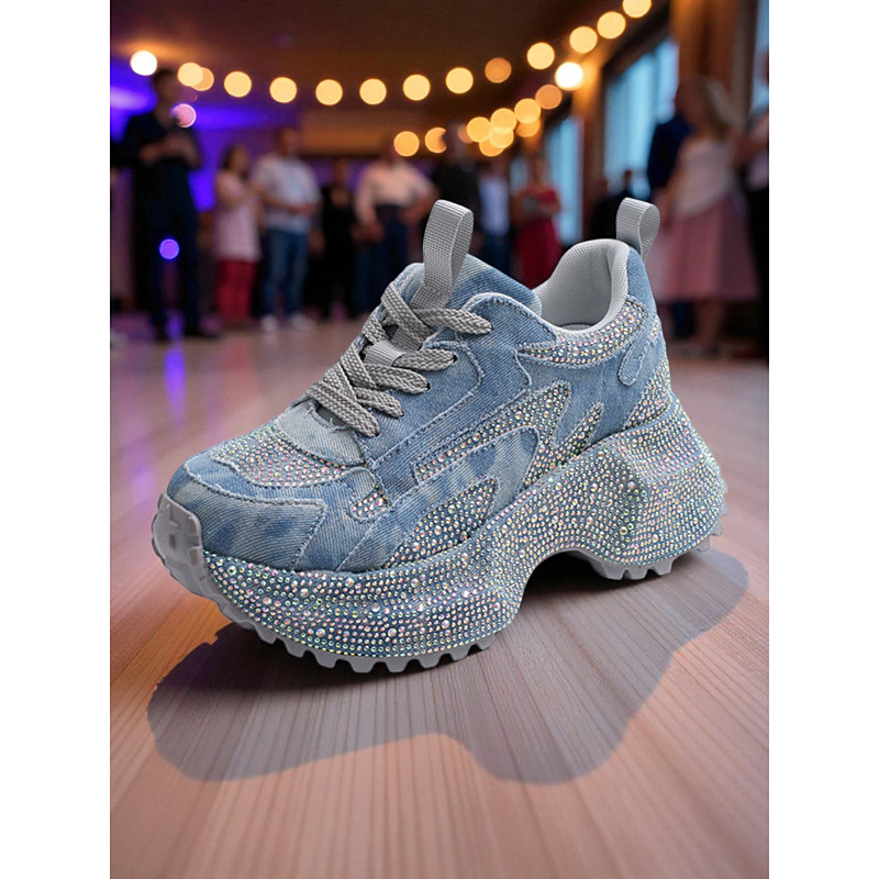 Women's Purple Rhinestone Platform Sneakers - Sparkly Chunky Dance Trainers for Nightclub, Stage Performance and Nightlife Party Fashion