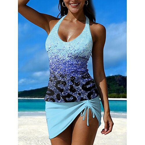 Per donna Tankini Costume da bagno a due pezzi All'americana Senza schiena Costume da Bagno Leopardato Costumi da bagno Blu Nero Asciugatura Rapida Leggero Traspirante Senza Maniche - Surf Spiaggia