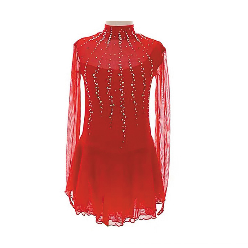 Figure Skating Dress Women's Girls' Ice Skating Dress Red Patchwork Thumbhole Mesh Spandex Stretchy Training Practice Professional Skating Wear Thermal Warm Crystal / Rhinestone Long Sleeve Ice