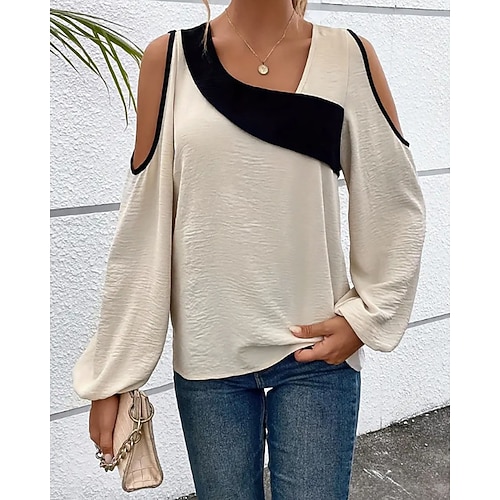 Per donna Blusa Semplice Elegante Moderno Manica Lunga Asimmetrico Top Regolari Quotidiano Ferie Uscire Patchwork Vino Albicocca Primavera Autunno Inverno