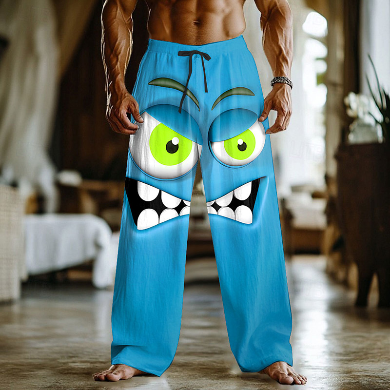 Men's 3D Cartoon Smile Face Trousers Baggy Pants Casual Pants Mid Waist Funny Outdoor Vacation Home Elastic Drawstring Waist Linen-Like Pants with Pockets Spring Fall 3D Print Red Blue Orange