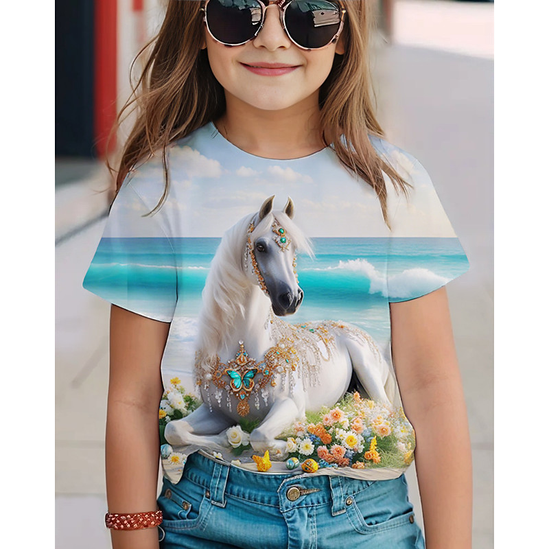 Girls' 3D Horse T shirt Tee Short Sleeve Summer Spring Fashion Basic Kids 4-12 Years Crew Neck Outdoor Casual Daily Regular Fit