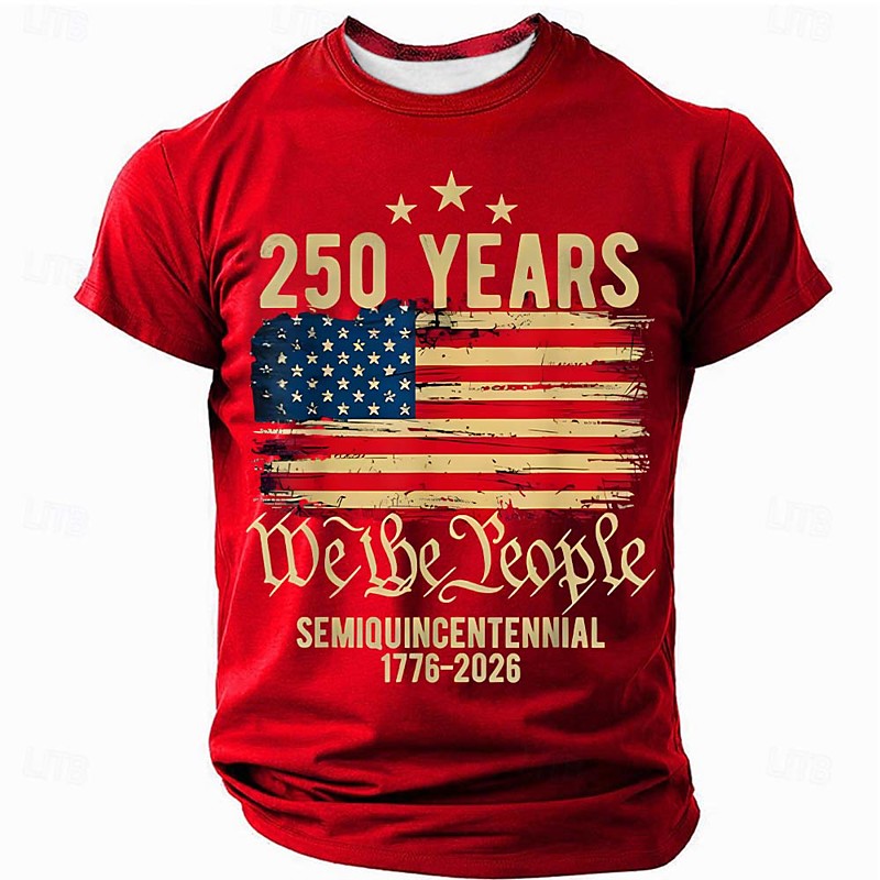 America's 250th Anniversary Men's American Flag T Shirt Short Sleeve T shirt 3D Print Crew Neck Shirt Street Style Casual Party Birthday Blue Black Red Summer Spring Clothing Apparel S M L XL XXL XXXL
