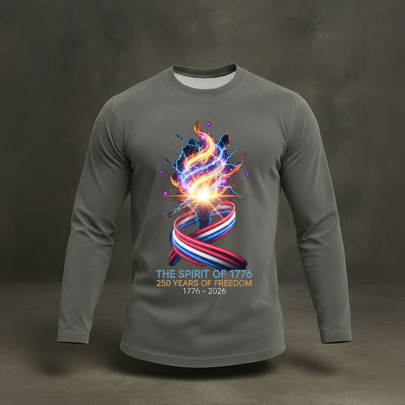 America's 250th Anniversary Men's Graphic Torch T Shirt Tee Top Long Sleeve Shirt Long Sleeve T shirt 3D Print Crew Neck Shirt Fashion Daily Basic Daily Vacation Street Navy Blue Khaki Army Green