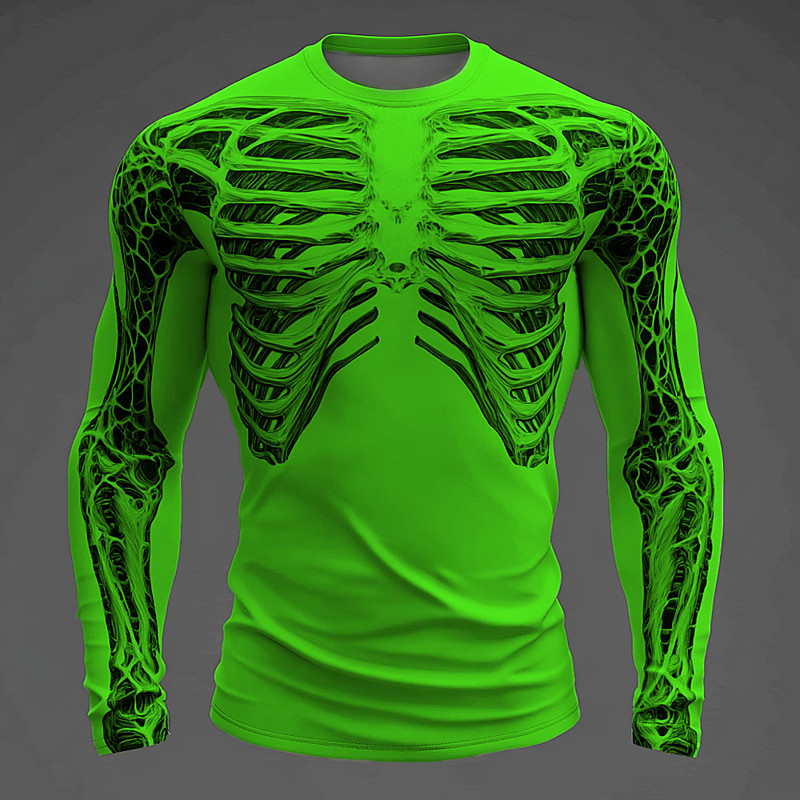 Men's 3D Skeleton T Shirt Long Sleeve T shirt 3D Print Crew Neck Shirt Fashion Exaggerated Street Casual Daily White Blue Orange Summer Spring Fall Clothing Apparel S M L XL XXL XXXL
