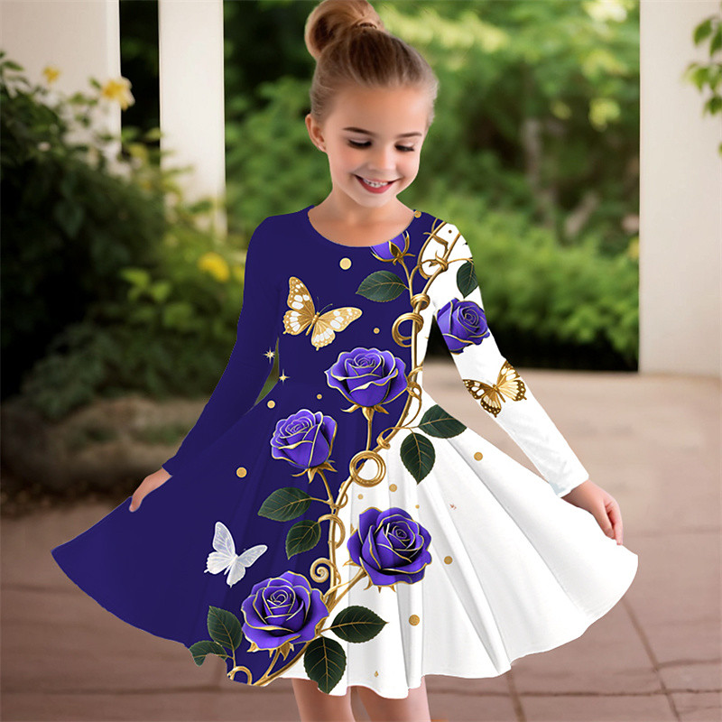 Girls' 3D Butterfly Flower Dress Long Sleeve Summer Spring Vacation Daily Holiday Princess Beautiful Sweet Kids 4-12 Years Casual Dress A Line Dress Knee-length Regular Fit
