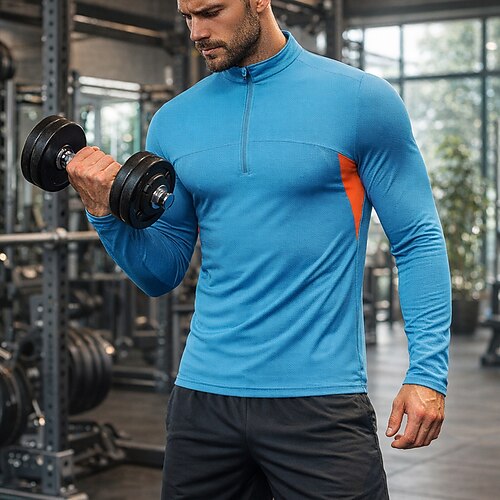 Per uomo T-shirt da corsa Maglia a compressione Maglia atletica Sport in alto Cerniera a un quarto Manica Corta Top Autunno Inverno Blocco di colori Asciugatura Rapida Traspirante Palestra
