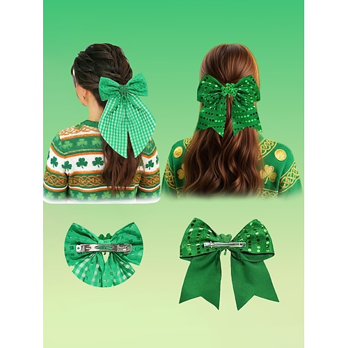 fermagli per capelli con fiocco verde per la festa di San Patrizio, set da 2 - paillettes scintillanti accessori per capelli con nastri a quadretti per feste e sfilate irlandesi abiti per le vacanze