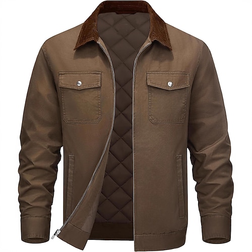 giacca da uomo in cotone per esterni, giacca da camicia, giacca cargo, imbottita, formale, da casa, tasca semplice, autunno, tinta unita, attiva, neutra, colletto della camicia, corta, nera, blu navy,