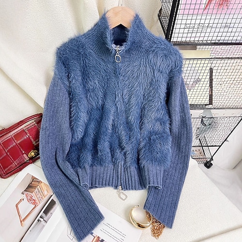 Per donna Felpa Cardigan Streetwear Casual Tinta unica Collo alla coreana Lavorato a maglia Manica Lunga Top Regolari Maglia Quotidiano Ferie Uscire Nero Bianco Autunno Inverno