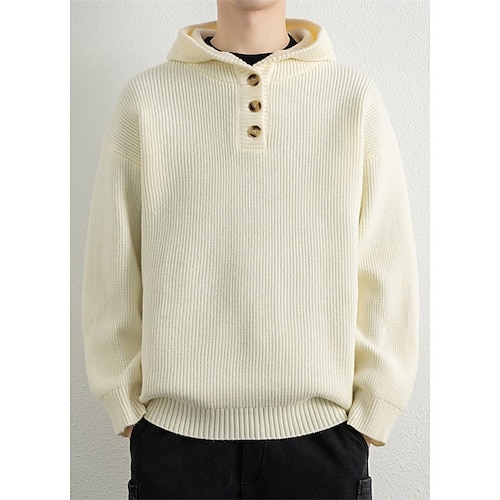 Per uomo Felpa Maglione Maglione con cappuccio A Coste Maglia Top Regolari Cardigan con Bottoni Lavorato a maglia Tinta unica Con Cappuccio Maglieria Contemporaneo Casuale Abbigliamento quotidiano