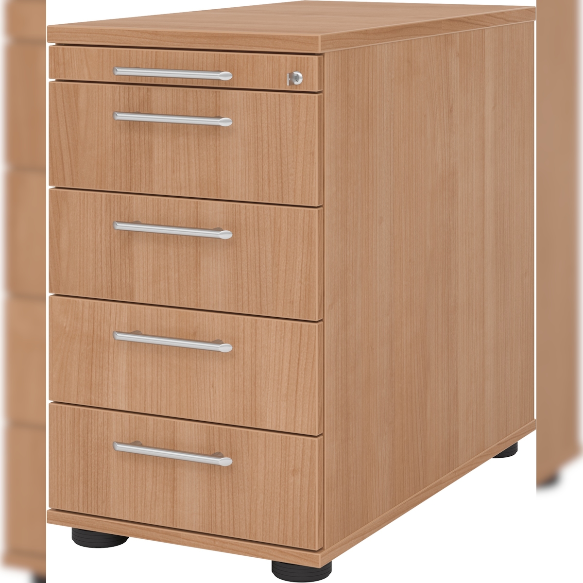 bümö Schreibtisch Schrank abschließbar, Schubladenschrank Holz in Nussbaum, Container mit Schubladen - Schubladen Schrank Büro, Schreibtisch