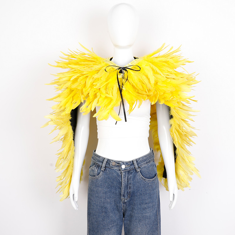 Women's Long Red Feather Cape Shawl with Ribbon Tie, Gothic Vampire Devil Costume Stole, Natural Feather Poncho Shrug
