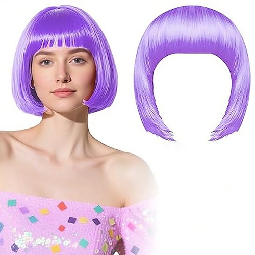 Parrucca di Carnevale Nero Blu Viola Liscio Ciocca Corto Parrucca sintetica da festival Martedì grasso Parata Capelli per costumi da cosplay per Da donna