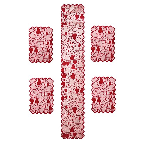 set di tovagliette e runner da tavola in pizzo a forma di cuore per San Valentino, design con cupido rosso, perfetti per matrimoni, cene romantiche, decorazioni festive, ideali per decorazioni