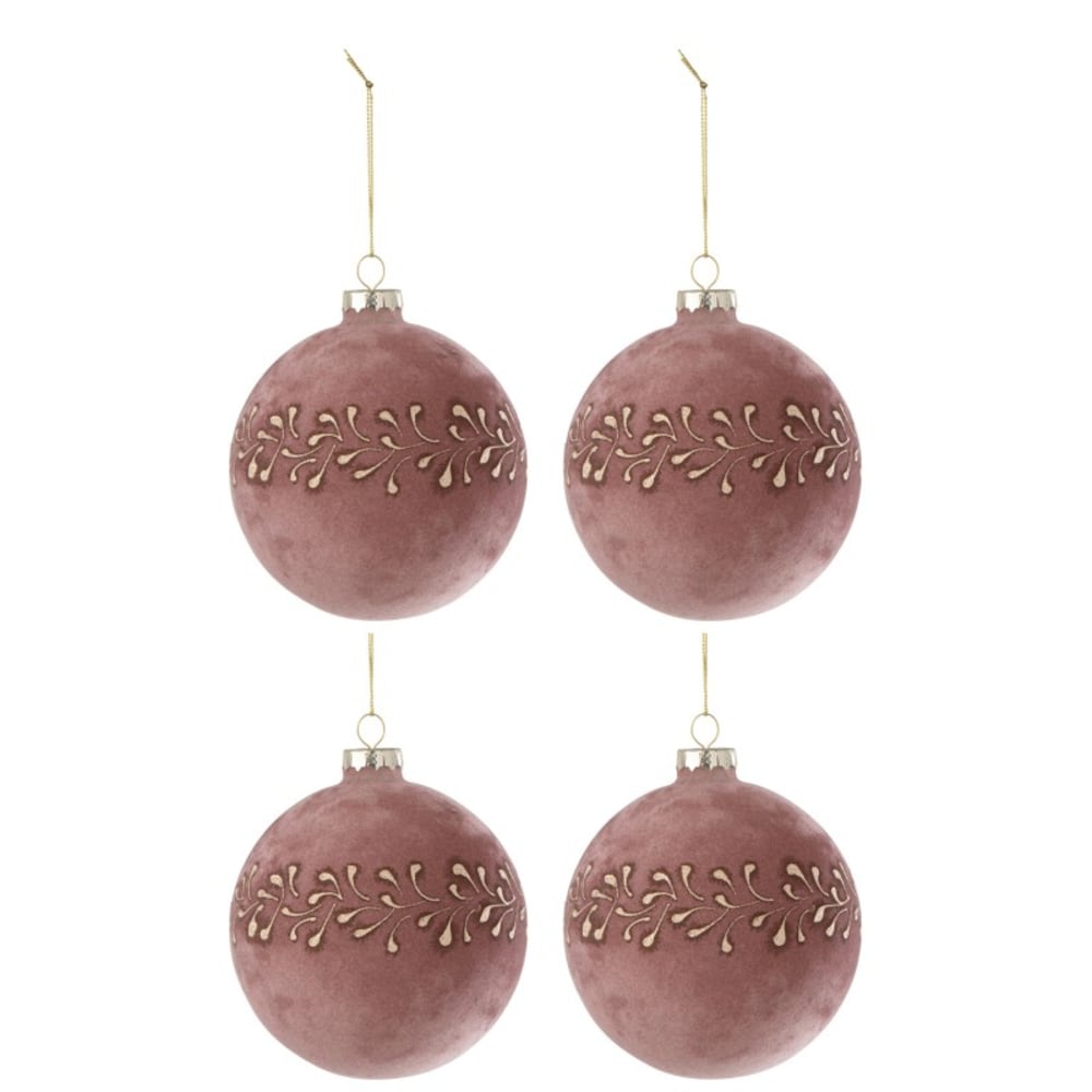 Scatola di 4 palline di Natale in vetro rosa 10x10x10 cm