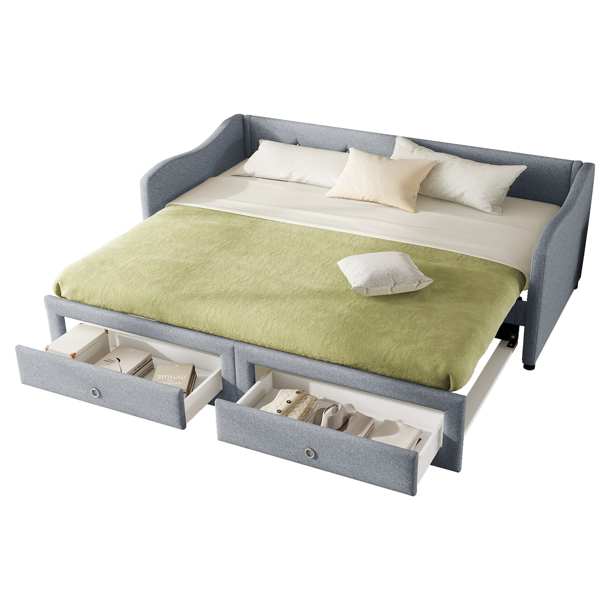 OKWISH Daybett 90x200 cm mit ausziehbarem Bett und zwei Schubladen, Schlafsofa, Einzelbett, robustes MDF und Leinen, modernes Design, Grau