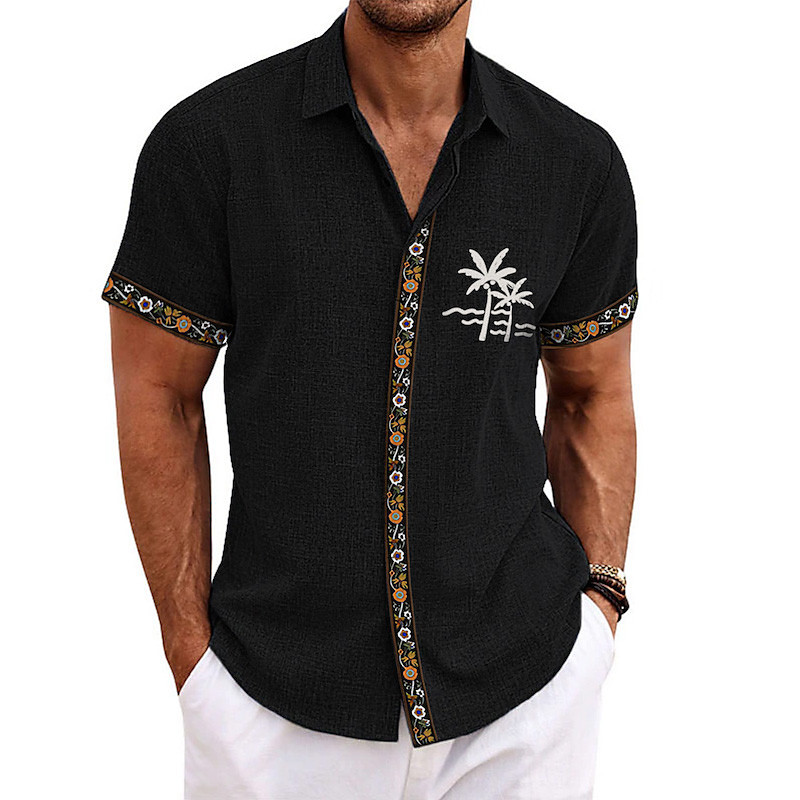 Men's Coconut Tree Tropical Plants Linen Shirt Beach Shirt Summer Hawaiian Shirt Short Sleeve Hawaiian Vacation Holiday Beach Wear Summer Spring Turndown Collared Shirts Blue Green Gray