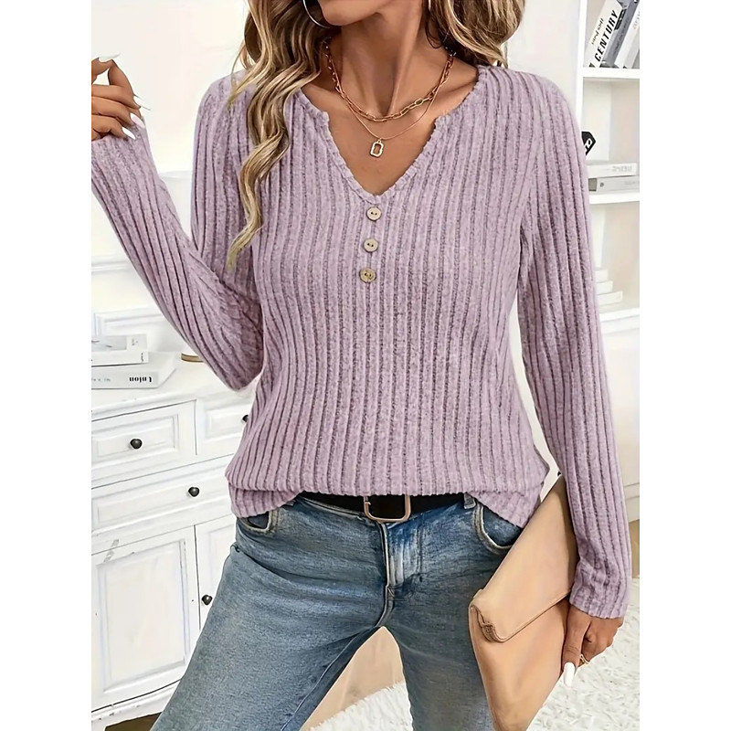 Women's Blouse Solid Color Stylish Casual Long Sleeve V Neck Regular Tops Daily Buttons Pink Army Green Blue Khaki Light Grey Summer Spring Fall