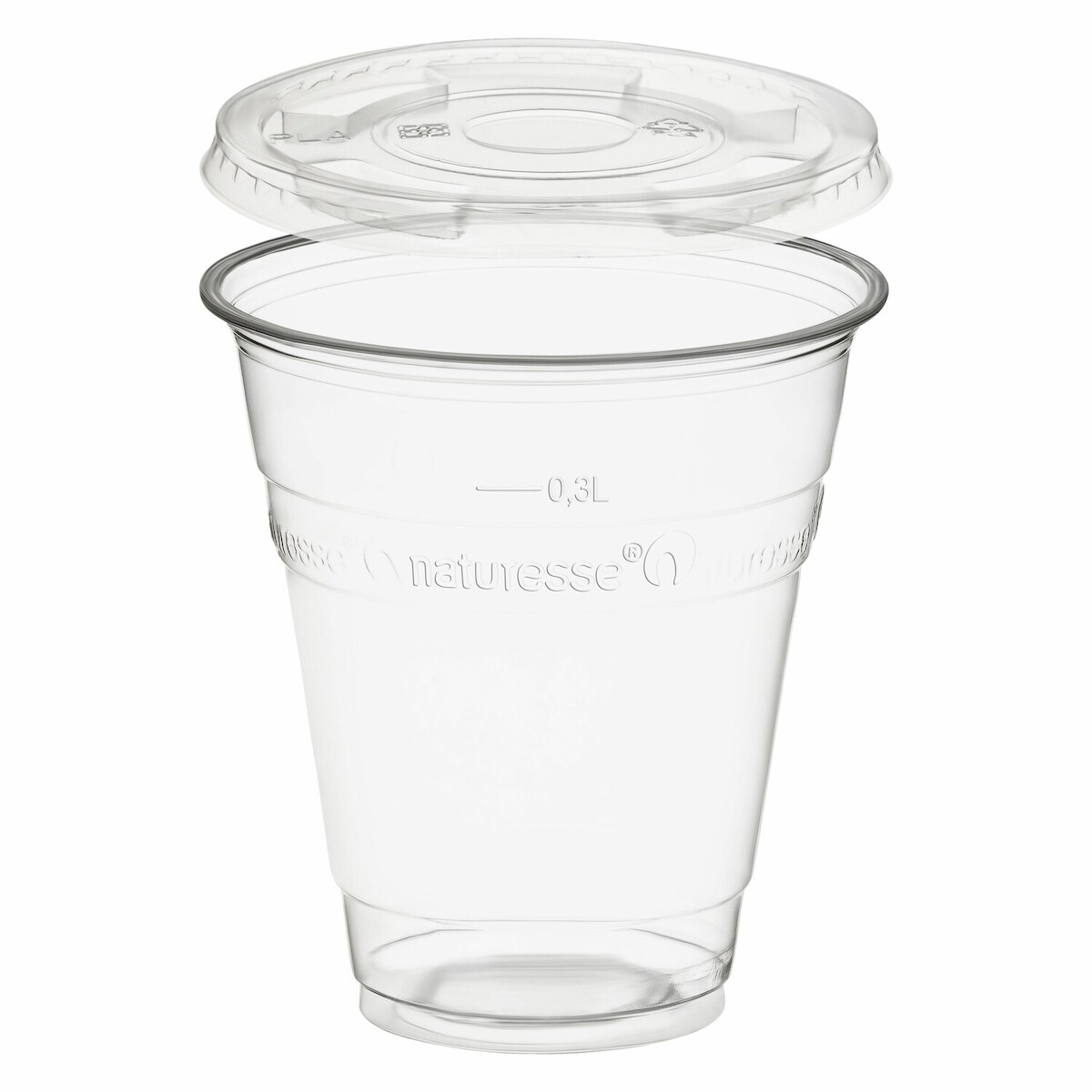 VEPATIM 250x BIO Trinkbecher 300ml + Deckel ohne Loch aus Biokunststoff (PLA)