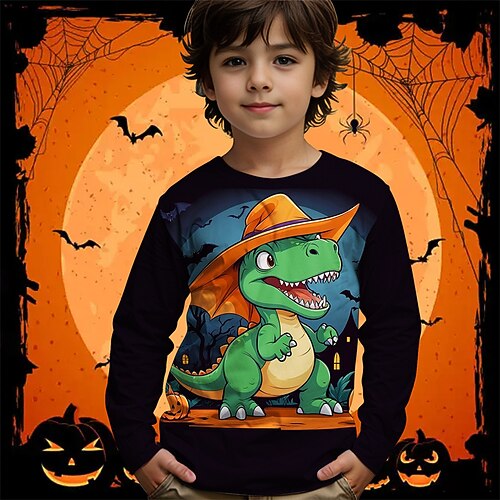 Halloween Jungen 3D Cartoon Kürbis Dinosaurier T-Shirt Langarm Frühling Herbst Mode Basic Kinder 4-12 Jahre Rundhalsausschnitt Outdoor Lässig Täglich Normale Passform