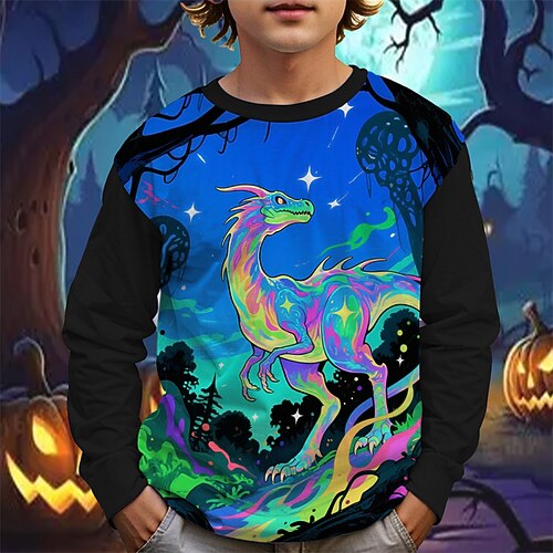 Halloween Jungen 3D Cartoon Dinosaurier T-Shirt Langarm Frühling Herbst Mode Basic Kinder 4-12 Jahre Rundhalsausschnitt Outdoor Lässig Täglich Normale Passform